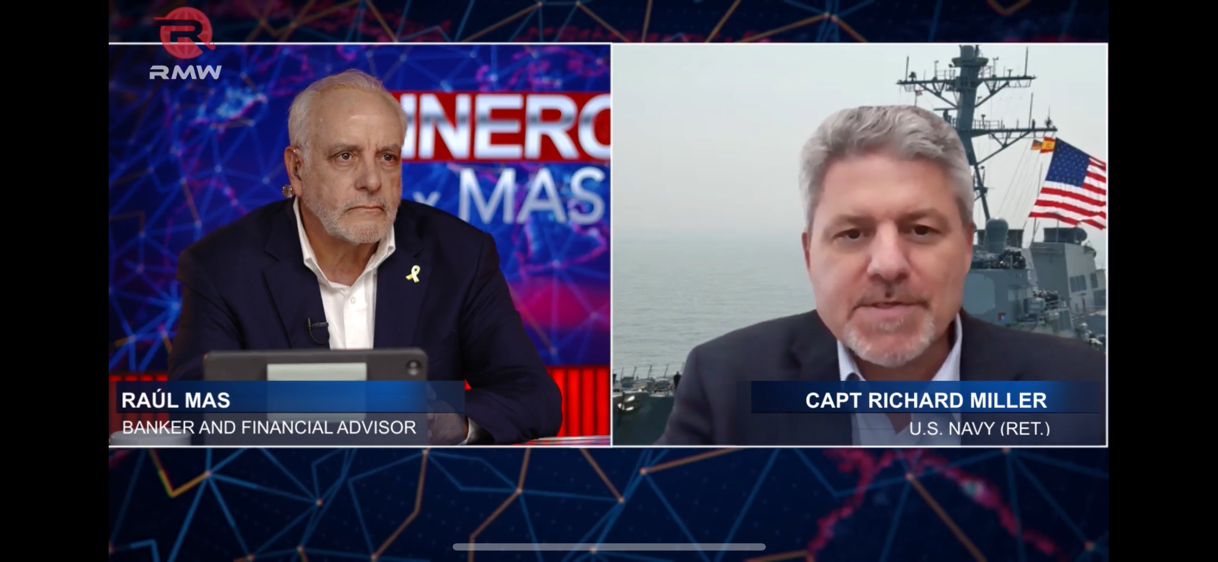 En una nueva entrega del programa Dinero y Más, el conductor Raúl Mas abordó una conversación de alto nivel con Richard Miller, capitán retirado de la Marina de los Estados Unidos y exfuncionario del Pentágono y del Comando Sur. Con una carrera que abarca mando en el mar, estudios en el U.S. Naval War College y el National War College, así como experiencia en los círculos más altos de la planificación estratégica, Miller se ha consolidado como una voz autorizada en materia de defensa y seguridad.