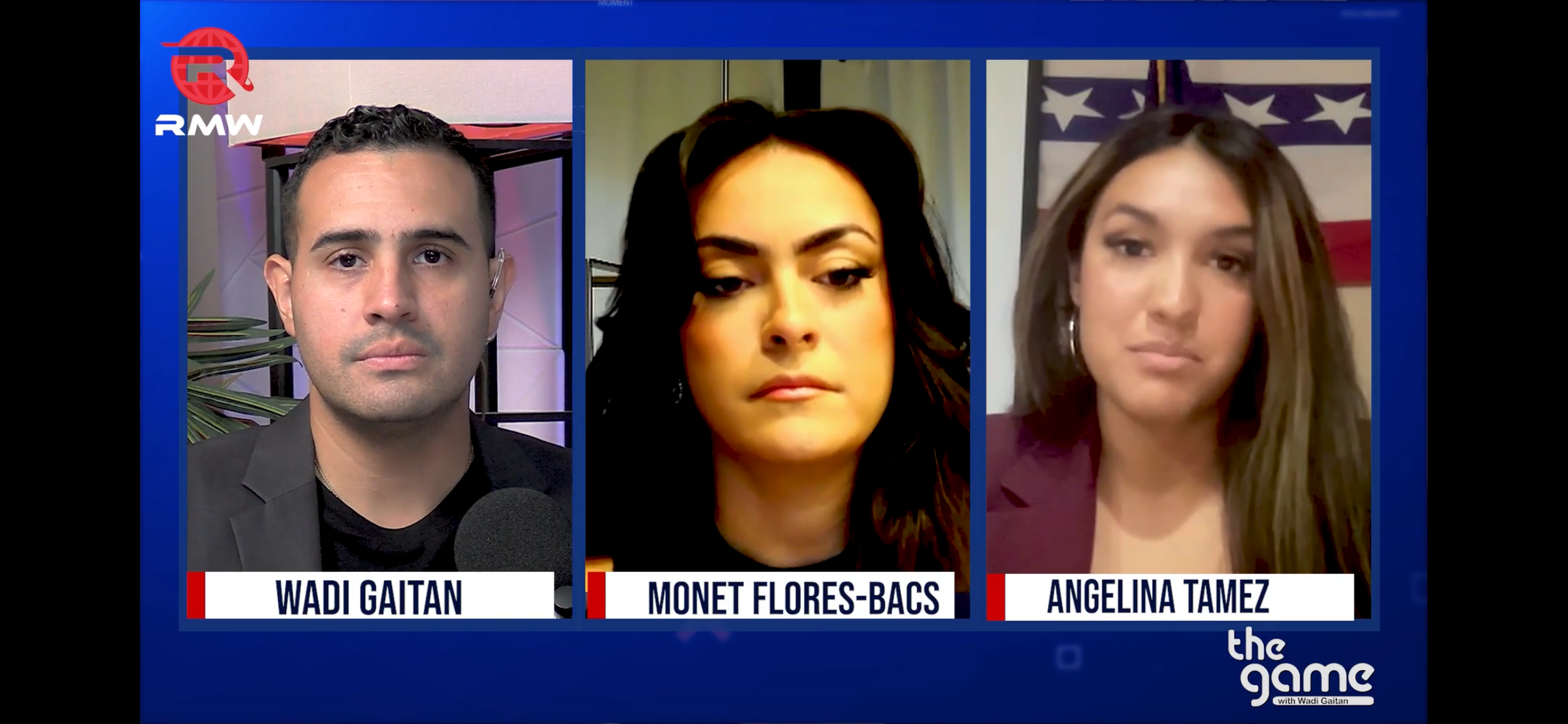 La anfitriona invitada Driena Sixto dirige esta edición de The Game, acompañada por Angelina Tamez de la Cámara de Comercio del Sur de Texas y Daniel Garza de The Libre Initiative.